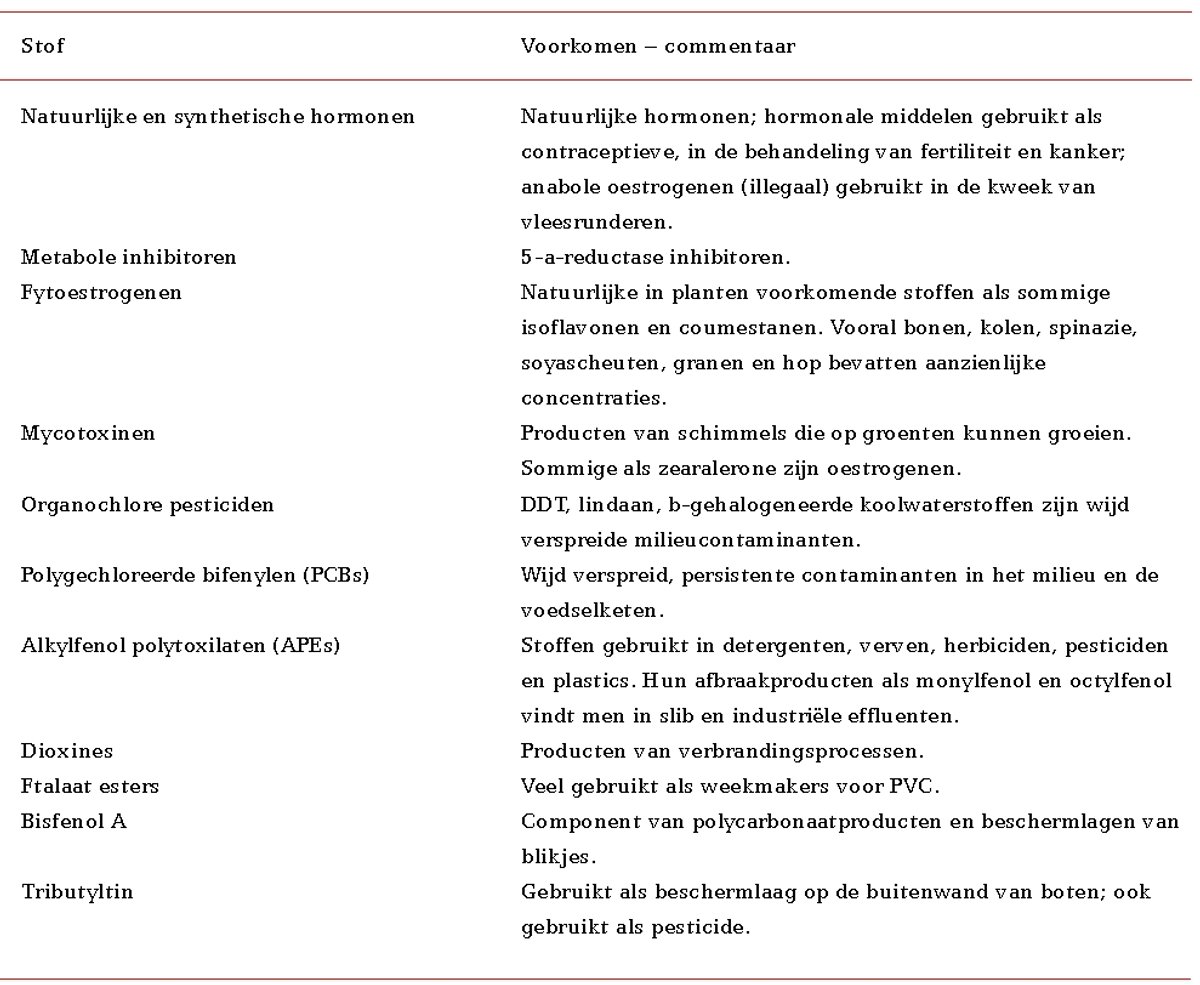 Tabel 1: Voorbeelden van gekende en vermoede producten die het endocrien systeem verstoren.