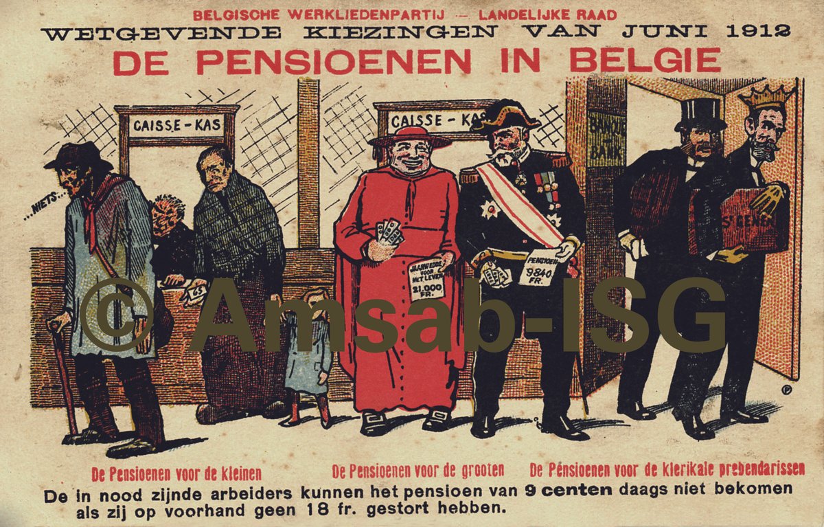 Sinds 1944 bestaat in België een systeem van sociale zekerheid dat het grootste deel van de bevolking verzekert tegen verschillende sociale risico’s zoals ziekte, invaliditeit, ouderdom, werkloosheid, kinderlast, arbeidsongevallen en beroepsziekten. Vandaag ligt die sociale zekerheid steeds meer onder vuur. Velen stellen zich vragen over de grenzen ervan. In dit portfolio vindt u prenten uit de brochure ‘Over leven. De strijd voor sociale zekerheid’, samengesteld door Paule Verbruggen (Amsab-ISG). Ze neemt u mee door twee eeuwen geschiedenis en toont hoe het systeem gegroeid is. De sociale zekerheid werd niet ‘uitgevonden’ als een kant-en-klaar product, maar langzaam opgebouwd. De armen en economisch zwakkeren waren daarbij geen willoze slachtoffers. Ze namen zelf het heft in handen, eerst vanuit een pure overlevingsdrang, later in een gezamenlijke strijd vanuit de georganiseerde arbeidersbeweging.