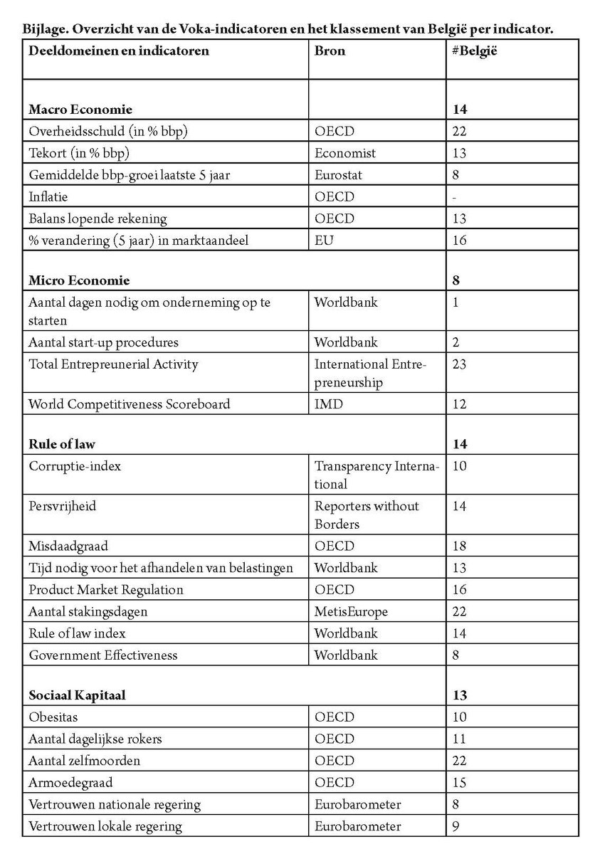Voka maakt hier naar eigen zeggen een selectie van ‘indicatoren cruciaal in een actieve welvaartsstaat’ (zie bijlage). Hier stelt zich onmiddellijk een probleem. Om dit te kunnen meten, moeten we die indicatoren correct kunnen meten en kwantificeren, wat niet zo eenvoudig is. We moeten het bovendien ook eens worden over welke indicatoren we gebruiken. Dit wordt al echt moeilijk. Als we ons bovendien in een situatie bevinden waarin niet alle noden in een keer gelenigd kunnen worden - een hypothese die breed aanvaard lijkt- moeten we bovendien nog een prioriteitsniveau toekennen aan onze parameters waarover we het nauwelijks eens geraakten en waarvan we niet weten hoe ze juist te meten.
