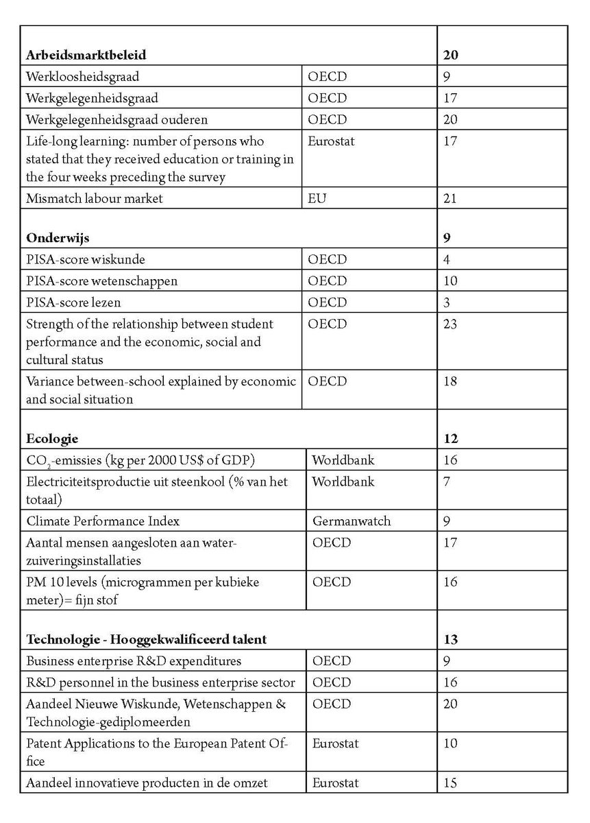 De opzet van Voka is op het eerste gezicht vrij eenvoudig. In het persbericht (5/10) lezen we: ‘Concreet heeft Voka een rangschikking gemaakt van 24 Europese landen. Bij elk land ging de organisatie na hoeveel belastingen de overheid heft en welke welvaart en dienstverlening ze daar tegenover stelt. Daarbij werden ‘indicatoren cruciaal in een actieve welvaartstaat’ gemeten.’ De 24 landen in de vergelijking zijn de 24 Europese landen die ook lid zijn van de OESO. Volgens Voka verhoogt dit de vergelijkbaarheid.
