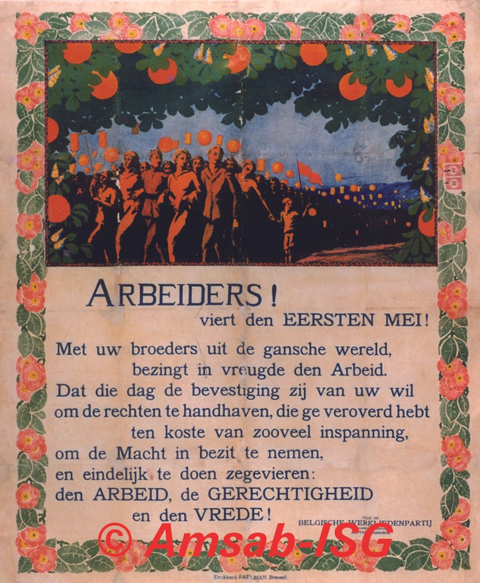 Op 1 mei viert de socialistische beweging ‘125 jaar Dag van de Arbeid’. Het is een ideale gelegenheid om te snuisteren in het indrukwekkende archief van het Amsab-Instituut voor Sociale Geschiedenis (www.amsab.be). Dit erfgoedcentrum voor sociaal, humanitair en ecologisch geëngageerde bewegingen verzamelt verhalen van gewone mensen: over hun verzet tegen onrecht en discriminatie, over hun strijd voor rechten en gelijkwaardigheid. In dit portfolio vindt u voornamelijk 1 mei-affiches uit de jaren 1920 en 1930. U leest er over ‘onrealistische’, ‘naïeve’ eisen, zoals een 40-urenweek of betaald verlof, vandaag echter allen werkelijkheid geworden. De affiches lezen als een herinnering, een aansporing bijna, om ook vandaag nog te durven dromen van een betere wereld.