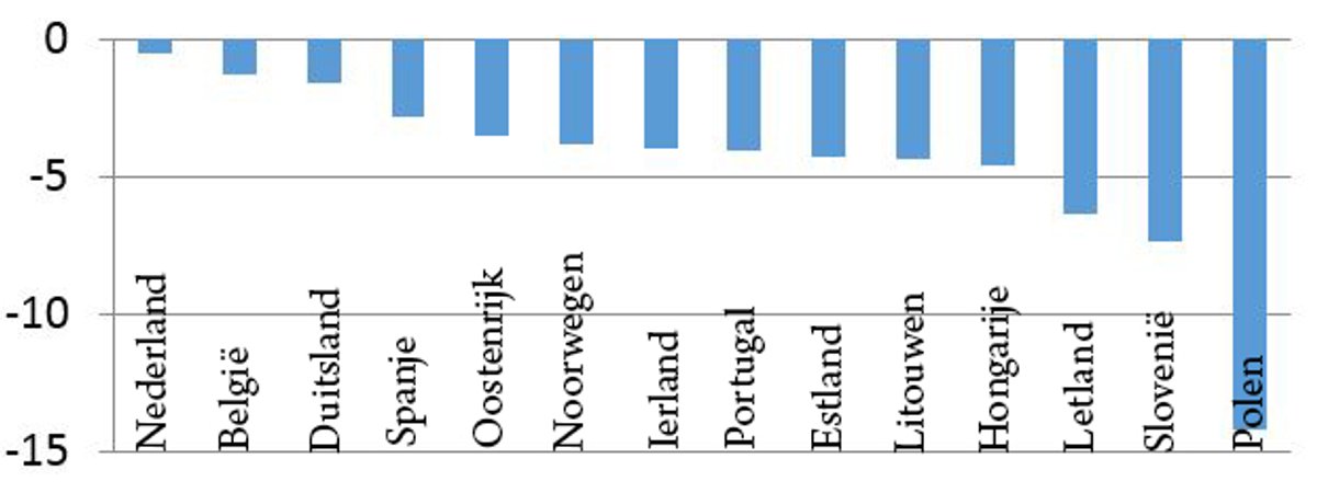 Sinds 1995 steeg de productiviteit in de privésector in vierentwintig onderzochte landen met gemiddeld 30%. Zoals Grafiek 1 aantoont stegen de mediaanlonen gemiddeld slechts met 22%. We nemen de mediaanlonen als referentie omdat gemiddelde lonen door 'outliers' te zwaar worden beïnvloed. De niet-marktsector laten we buiten beschouwing omdat productiviteitswinsten daar moeilijker te meten zijn.