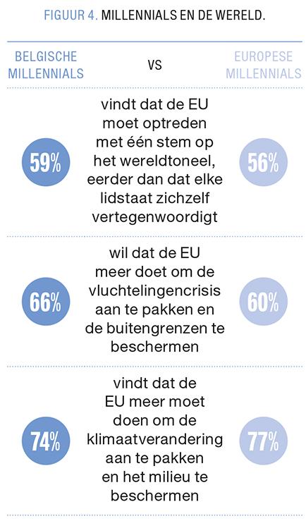 4 Dat percentage ligt min of meer in de lijn van Europese millennials (58%) en van wat de Europese publieke opinie daarover denkt (55%).