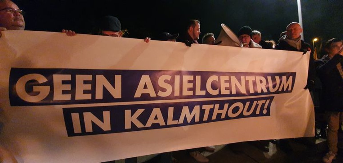 Intussen gaat het nieuws als een lopend vuurtje door de gemeente. Mensen maken zich zorgen. Extreemrechts deelt affiches uit. 'Geen asielcentrum in Kalmthout' hangt plots schreeuwerig aan ramen in anders stille straten. Op een protestmeeting aan het stationnetje in Heide verschijnen kopstukken van Vlaams Belang. Filip De Winter neemt het woord tegen een achtergrond van strijdvlaggen en fakkels. Dat er wellicht meer Antwerpenaren dan lokale mensen protesteren, maakt de avondlijke meeting niet minder beangstigend.
