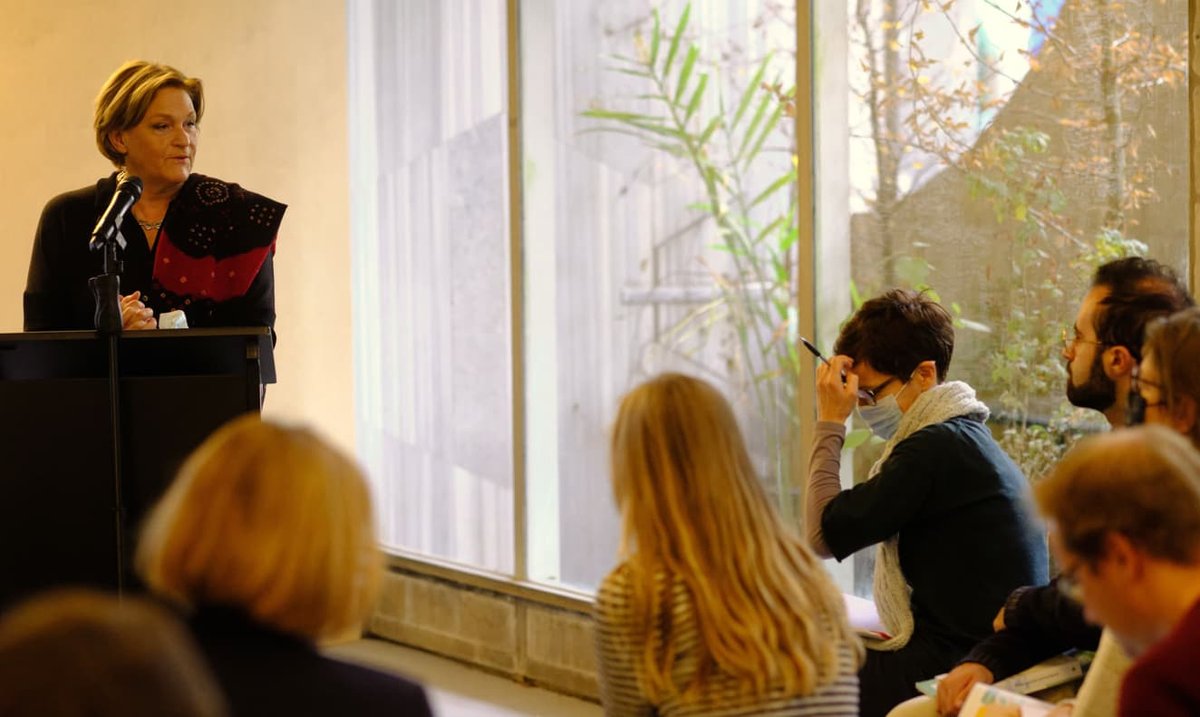 In een afsluitende lezing plaatste Els Hertogen (directeur 11.11.11) het klimaatvraagstuk ten slotte in het perspectief van internationale rechtvaardigheid. Ecologische vernieling, vervuiling en uitbuiting zijn verweven met het heden en verleden van internationale ongelijkheid. Onderbouwd met haar eigen ervaringen, reflecties en gesprekken met elf denkers over internationale rechtvaardigheid (die ze bundelde in Van liefdadig naar rechtvaardig, Lannoo), luidt ook haar argumentatie dat solidariteit geen bijzaak, maar de kern van klimaatbeleid moet zijn. Alsook van ons eigen handelen, zo sloot ze de bijeenkomst af met de inspirerende woorden: 'onderwerp de wereld om je heen iedere dag opnieuw aan een open blik, herken en erken de onrechtvaardigheid die je ziet, en zet je in om er iets aan te veranderen.'