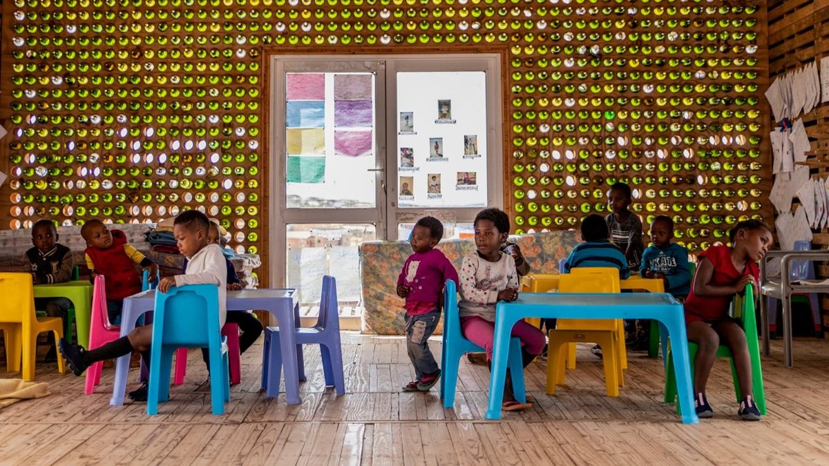 Voor Kevin gaat het er echter niet alleen om mooie gebouwen te ontwerpen. 'Het idee is om eenvoudige plaatselijke oplossingen te ontwerpen die door de lokale gemeenschap kunnen worden overgenomen. Ik gebruik recyclage als een middel om bruggen te bouwen. Zo'n crèche brengt mensen samen. En recycleren brengt ook voedsel op tafel.' Dit klopt want veel Zuid-Afrikanen verdienen hun brood door afval in te zamelen en te verkopen aan recyclagebedrijven.