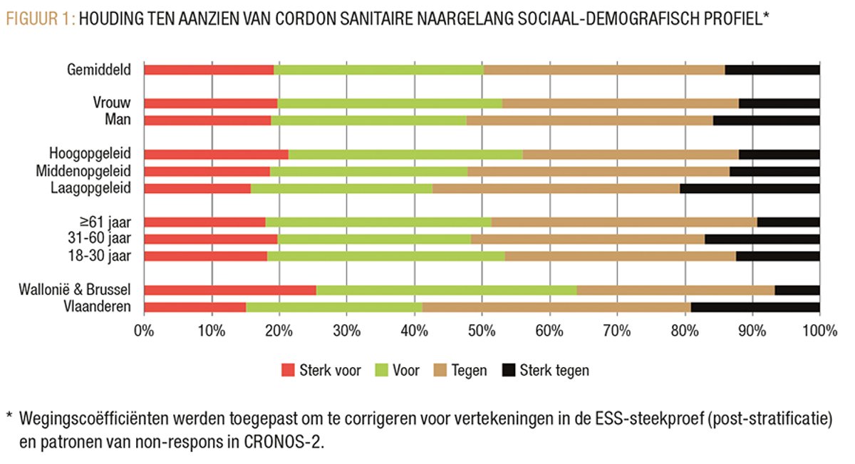 In Vlaanderen is de meerderheid van de respondenten (59%) tegenstander van het cordon, terwijl slechts een minderheid voorstander is (41%).