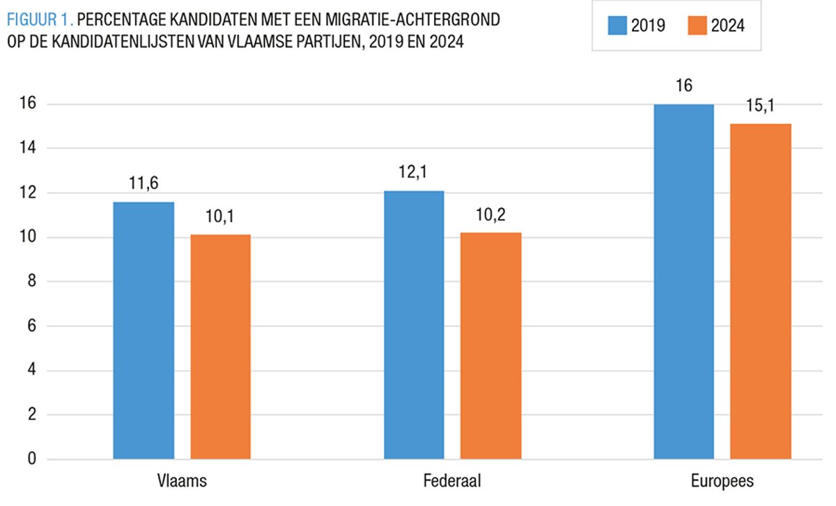 Ook voor de verkiezingen van 9 juni 2024 zien we vooral kandidaten met een migratie-achtergrond opduiken op de lijsten van linkse partijen en minder op die van rechtse partijen. De kandidatenlijsten vormen echter nog steeds geen representatieve afspiegeling van de bevolking.
