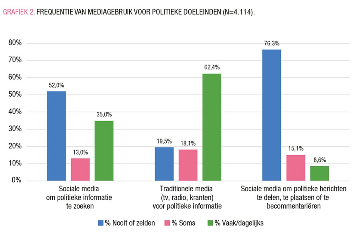 Het blijkt uit onze studie dat sociale media weliswaar veel gebruikt worden in België, maar dat het politieke gebruik ervan beperkt blijft, waarbij de traditionele media voor de meeste burgers nog steeds de primaire bron van politieke informatie zijn. Dit moet echter genuanceerd worden, aangezien jongere kiezers en degenen die op radicale partijen hebben gestemd, actiever zijn in het gebruik van sociale media voor politieke doeleinden.
